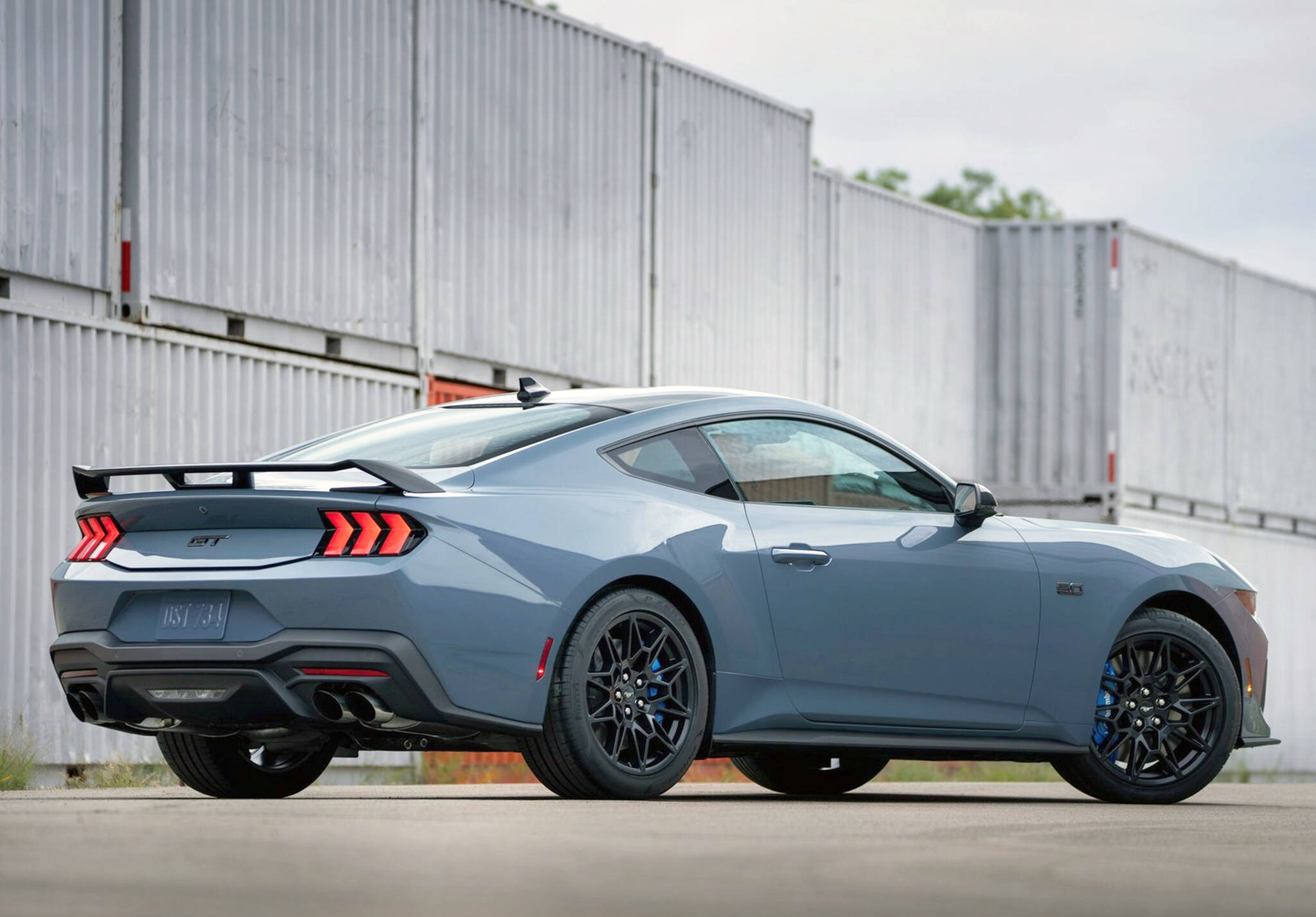 The result maintains the Mustang’s recognizable shape yet adds fresh details. There’s a sleeker hood that sweeps downward to meet an enlarged grille and lower air intakes. The front and rear fenders, which have been widened to accommodate increased distances between the left and right wheels, add to the Mustang’s more aggressive looks.