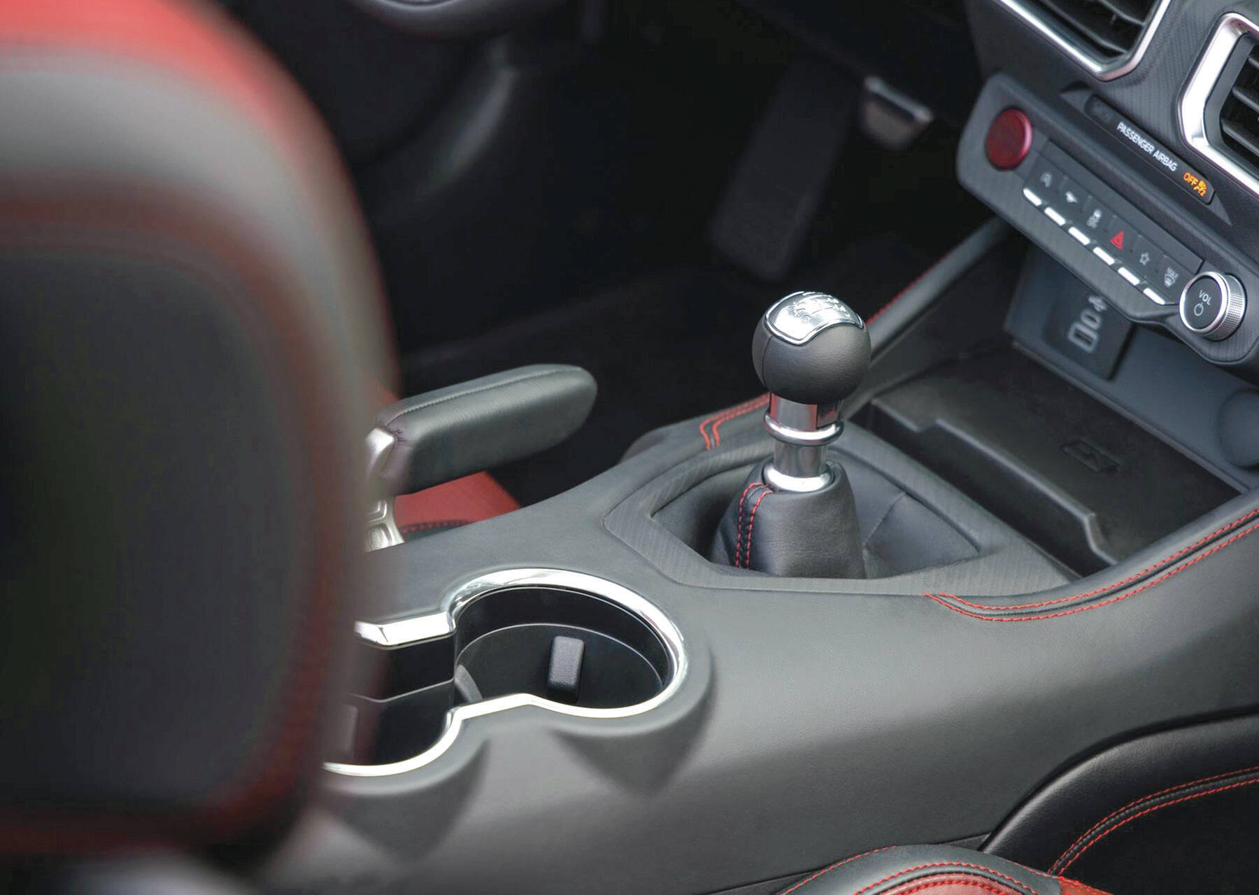 Points: Tougher-looking styling advances the previous design. • On paper, the turbocharged four-cylinder and nonturbo V-8 engines produce more than before, but it will be unnoticeable. • Track-oriented Dark Horse trim will provide GT350-level excitement. • Unique drift brake and Remote Rev systems will likely be popular, but they‘re unnecessary tricks.