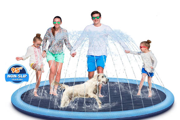 2. Non-slip splash pad that’s safe for pups and kids – Currently a top-seller on Amazon, this non-slip splash pad is designed with a thick, durable bottom, making it the perfect place for kids and their family pups to cool-off during the heat of summer!
