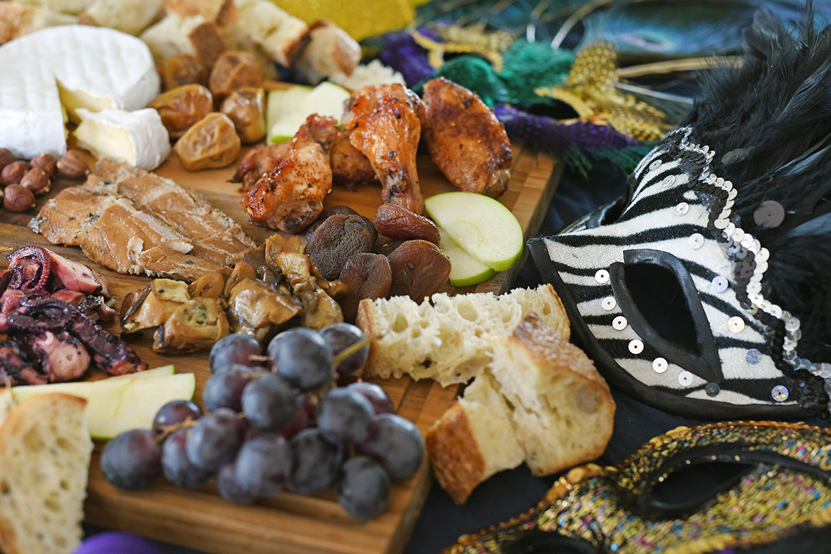 Add a bit of excitement to an otherwise ordinary charcuterie board with hearty additions like chicken wings and smoked seafood. Along with cured meats, cheeses, fruit, nuts and chunks of rustic bread, these were some of the favourite foods enjoyed by Elizabethan audiences of the Globe and Rose theatres, and will no doubt be a welcomed surprise to hungry guests at your next dinner party. Bonus points if the dress-code includes ruffled collars or theatrical masks.